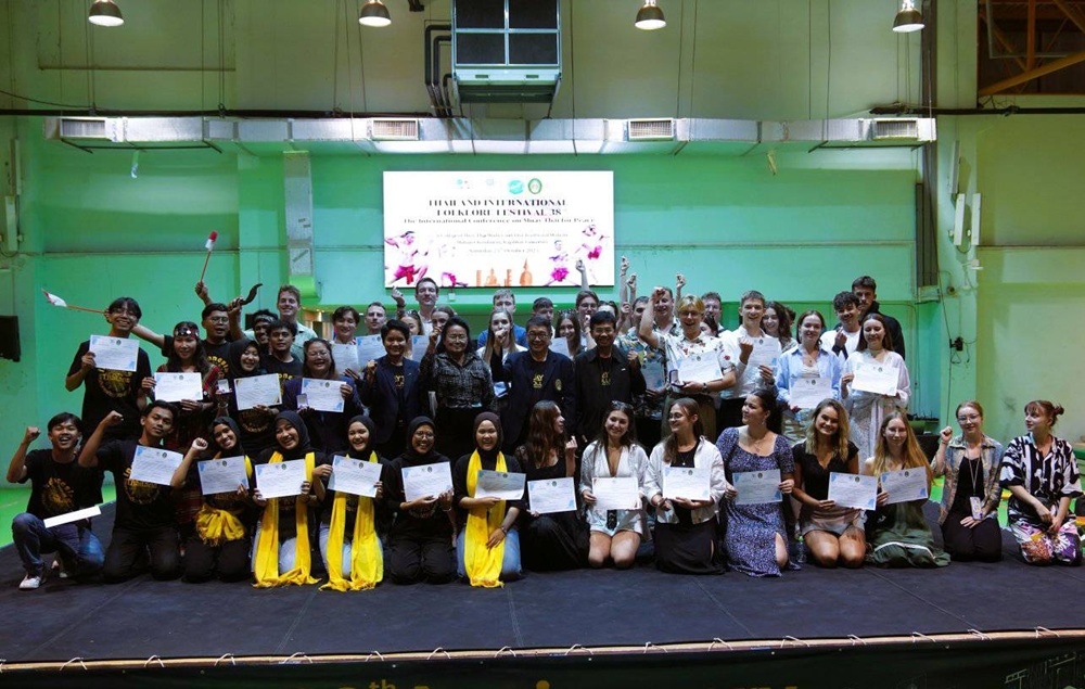 ในการนี้ ประธานมูลนิธิส่งเสริมมรดกทางวัฒนธรรมสุรินทร์ และ ประธานกรรมการเทศกาลคติชนวิทยานานาชาติแห่งประเทศไทย ได้นำคณะผู้ร่วมประชุมและศิลปินนานาชาติจาก 3 ประเทศ ได้แก่