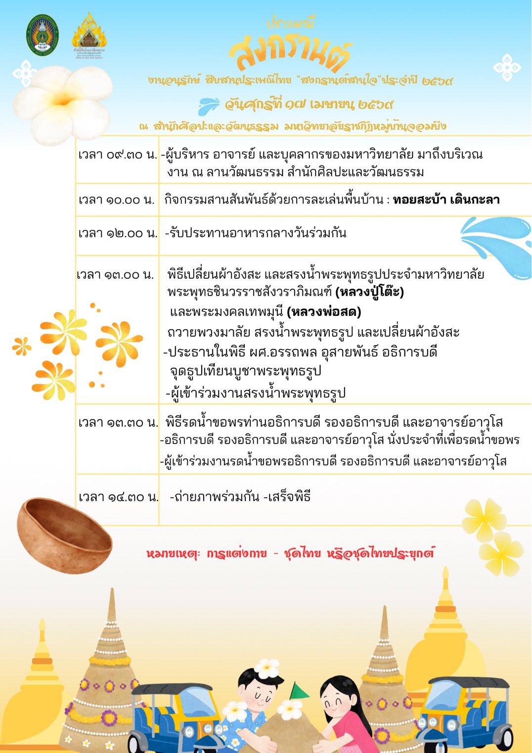 กิจกรรมนี้มุ่งเน้นปลูกจิตสำนึกอนุรักษ์วัฒนธรรมไทยให้คงอยู่คู่สังคม พร้อมเสริมสร้างความสามัคคี ขอเชิญชวนทุกท่านมาร่วมเฉลิมฉลองเทศกาลแห่งความสุขไปด้วยกันนะครับ/คะ