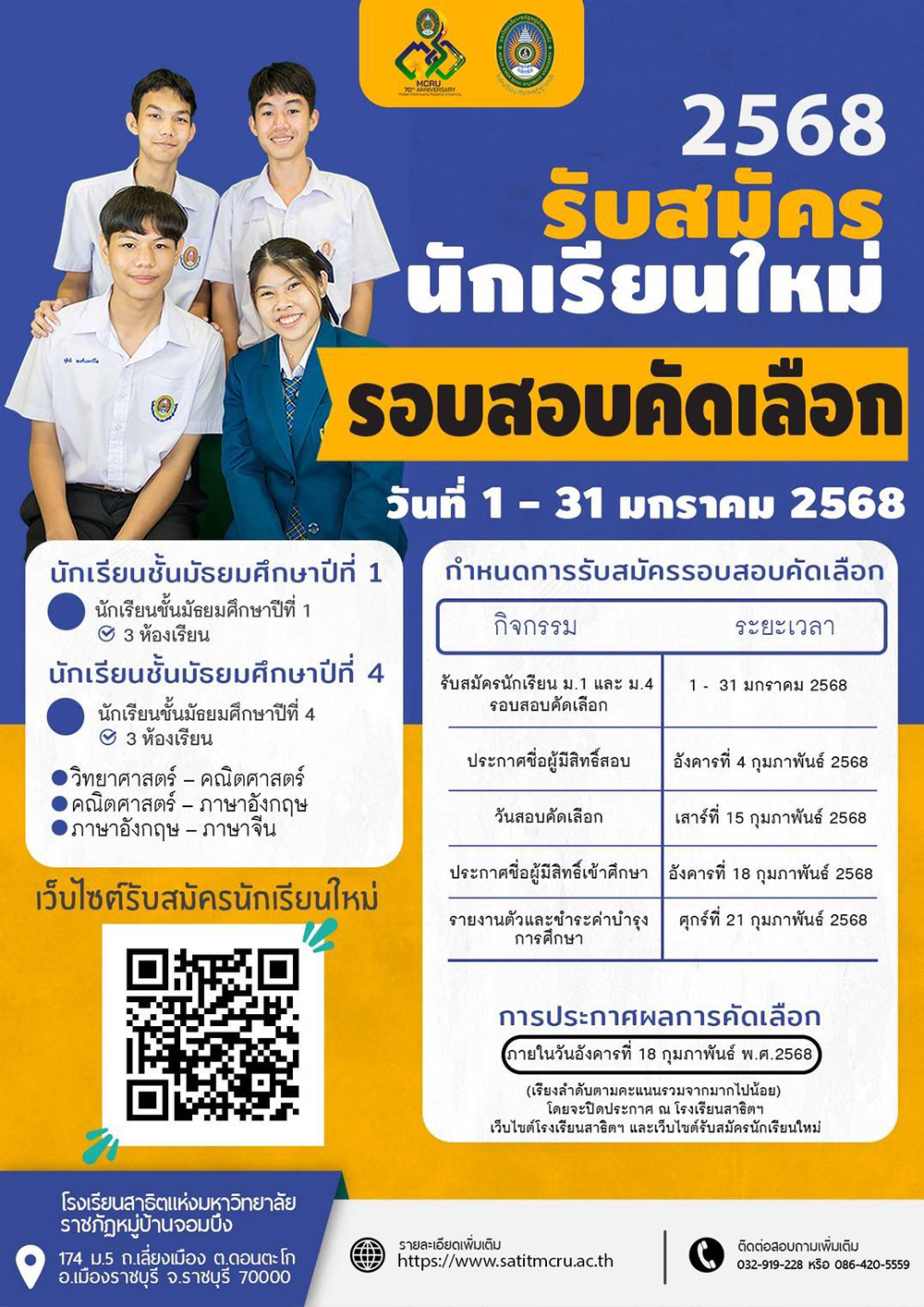 รับสมัครนักเรียนระดับชั้นมัธยมศึกษาปีที่ 1 และชั้นมัธยมศึกษาปีที่ 4 ปีการศึกษา 2568