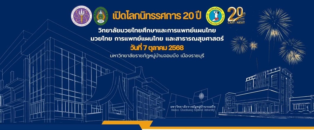 วิทยาลัยมวยไทยศึกษาและการแพทย์แผนไทย ขอเชิญร่วมงาน “นิทรรศการ 20 ปี วิทยาลัยมวยไทยศึกษาและการแพทย์แผนไทย” มหาวิทยาลัยราชภัฏหมู่บ้านจอมบึง เมืองราชบุรี เพื่อร่วมเปิดโลกแห่งความรู้ด้าน มวยไทย • การแพทย์แผนไทย • สาธารณสุขศาสตร์ ในวันที่ 7 ตุลาคม 2568 ณ บริเวณโถงใต้ตึก 15 มหาวิทยาลัยราชภัฏหมู่บ้านจอมบึง