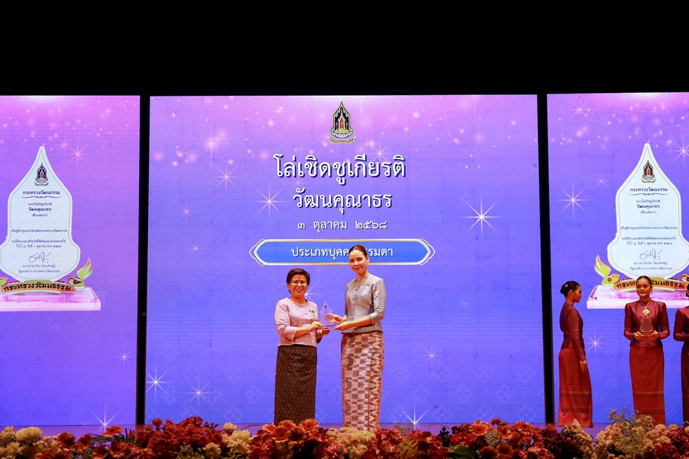 มหาวิทยาลัยราชภัฏหมู่บ้านจอมบึง ขอแสดงความยินดีกับผู้ช่วยศาสตราจารย์ปรียาพร ทองผุด อาจารย์สาขาวิชาศิลปศึกษา คณะมนุษยศาสตร์และสังคมศาสตร์ ที่ได้รับรางวัลยกย่องเชิดชูเกียรติผู้ทำคุณประโยชน์ด้านศาสนา ศิลปะ และวัฒนธรรม "วัฒนคุณาธร ประจำปี 2568" เมื่อวันที่ 3 ตุลาคม 2568 เวลา 13.30 น. ณ หอประชุมใหญ่ ศูนย์วัฒนธรรมแห่งประเทศไทย ซึ่งกระทรวงวัฒนธรรมได้จัดพิธีมอบโล่ยกย่องเชิดชูเกียรติ “วัฒนคุณาธร ประจำปี 2568” โดยมี นางสาวซาบีดา ไทยเศรษฐ์ รัฐมนตรีว่าการกระทรวงวัฒนธรรม เป็นประธานในพิธี