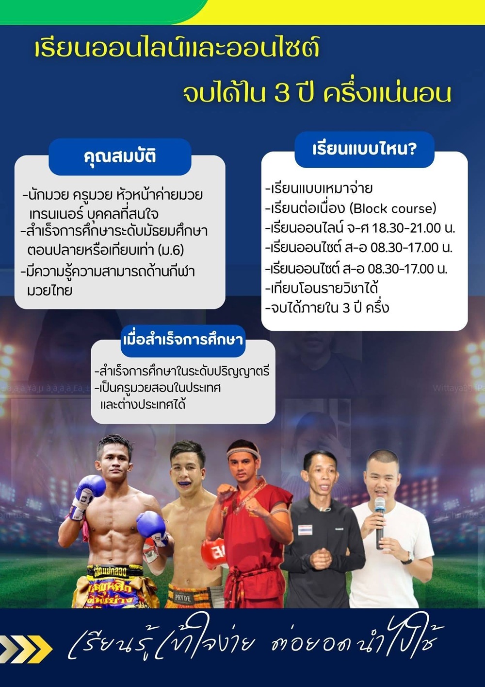 "ตอบโจทย์การเรียนรู้ตลอดชีวิต สนับสนุนการพัฒนาศักยภาพบุคลากรในวงการมวยไทยให้เติบโตอย่างยั่งยืนทั้งด้านวิชาการและวิชาชีพ"
