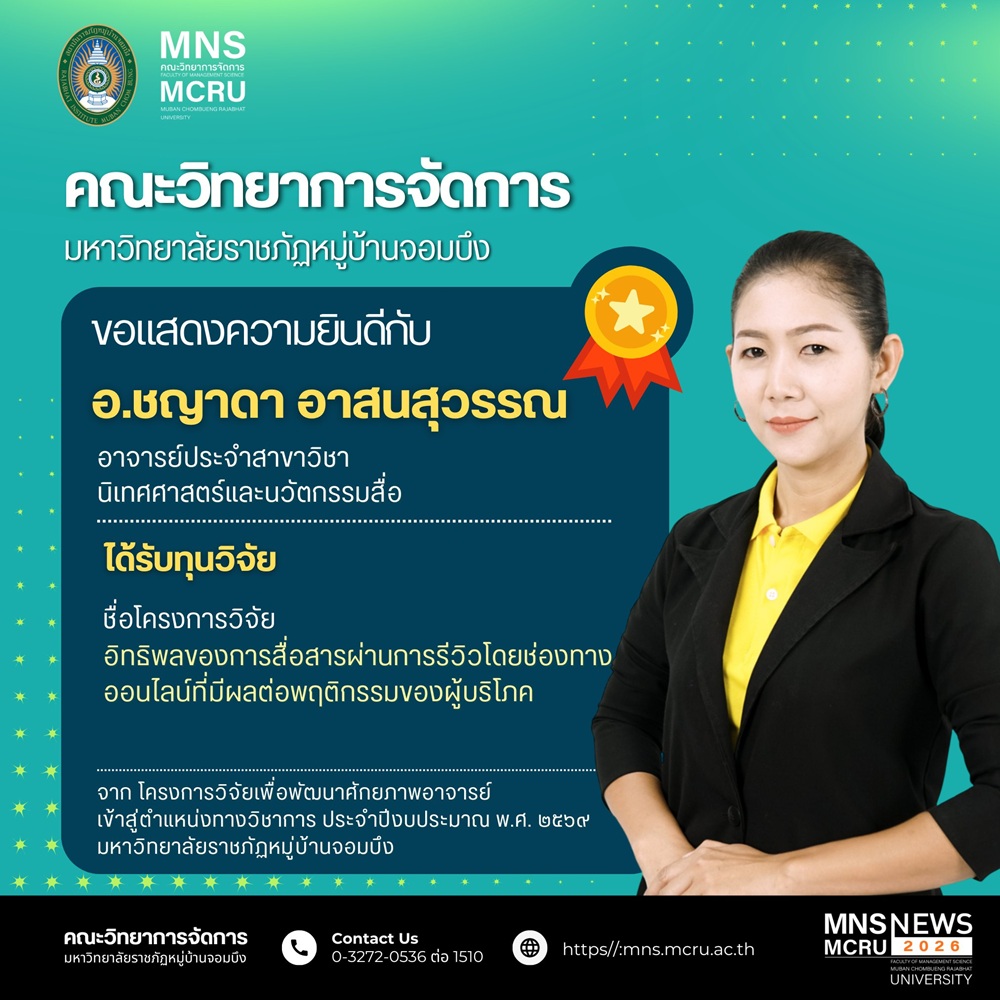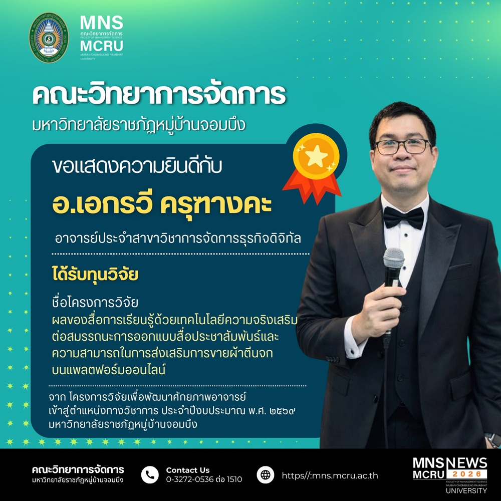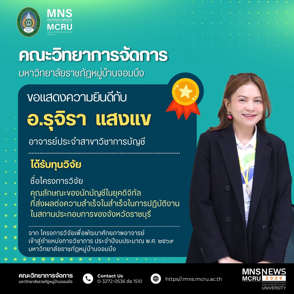 มหาวิทยาลัยราชภัฏหมู่บ้านจอมบึง ขอแสดงความยินดีกับอาจารย์