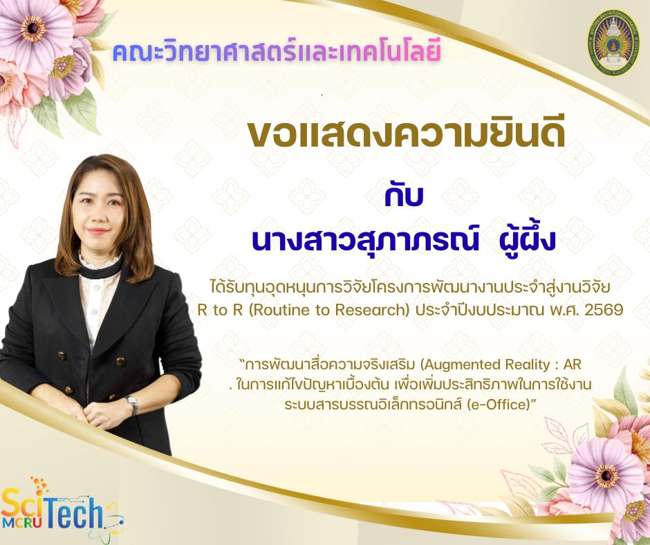 ที่ได้รับทุนวิจัย ประจำปีงบประมาณ พ.ศ. 2569 มหาวิทยาลัยราชภัฏหมู่บ้านจอมบึง