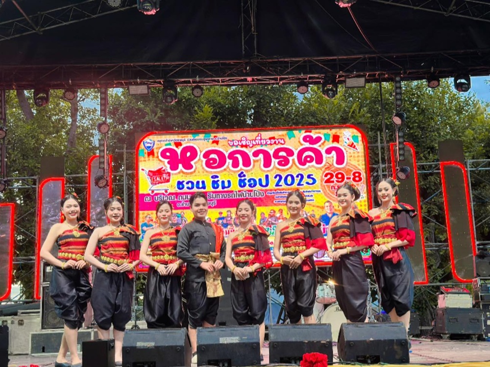 เมื่อวันที่ 29 กันยายน 2568 อาจารย์ธนกฤต สาขะจันทร์ รองผู้อำนวยการสำนักศิลปะและวัฒนธรรม มหาวิทยาลัยราชภัฏหมู่บ้านจอมบึง ได้นำนักศึกษาชมรมศิลปะและวัฒนธรรม เข้าร่วมเผยแพร่การแสดงทางวัฒนธรรมอันงดงามในงาน “หอการค้า ชวน ชิม ช็อป 2568” ณ ถนน ร.9 ริมทางรถไฟบ้านโป่ง จังหวัดราชบุรี ที่จัดโดยหอการค้าจังหวัดราชบุรี