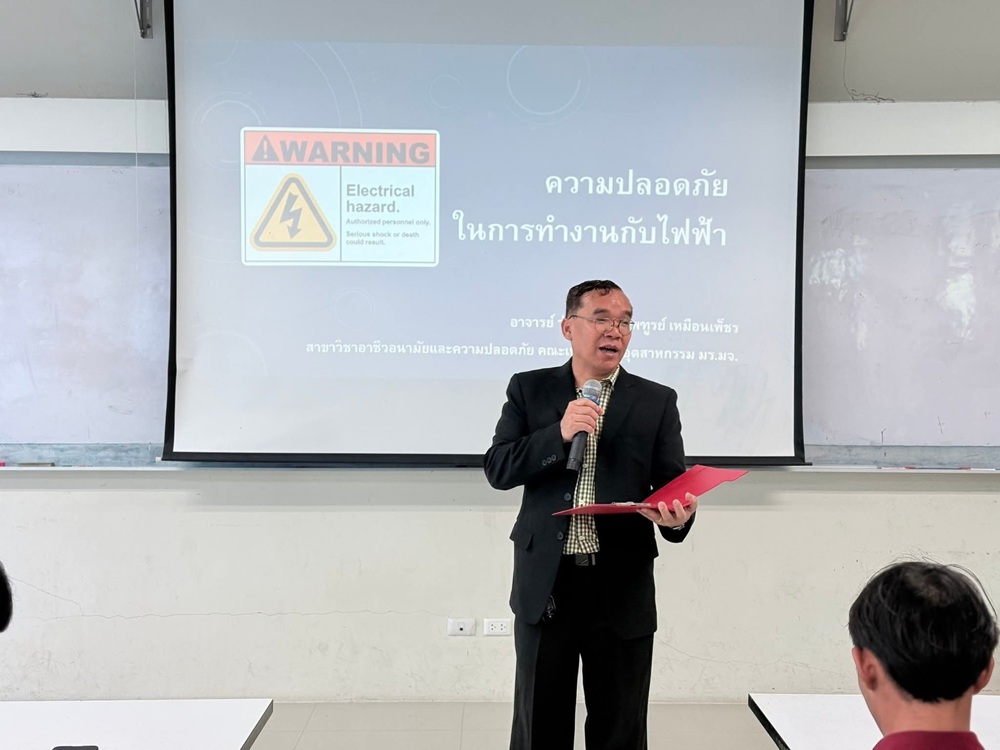 สาขาวิชาเทคโนโลยีไฟฟ้าและอิเล็กทรอนิกส์ คณะเทคโนโลยีอุตสาหกรรม จัดโครงการสัมมนาเสริมความรู้ด้านอาชีวอนามัยและความปลอดภัยในการทำงานกับไฟฟ้า