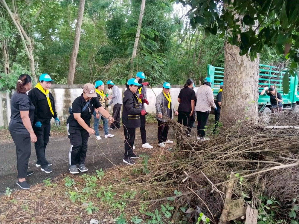 🌿 กลุ่มที่ 1: ปรับภูมิทัศน์และทำความสะอาดบริเวณ “บ้านไร่รักษ์ถิ่น” ดำเนินการตัดหญ้า เก็บกิ่งไม้ และทำความสะอาดตลอดสองข้างทาง เพื่อให้พื้นที่มีความสะอาด สวยงาม และเป็นระเบียบเรียบร้อย