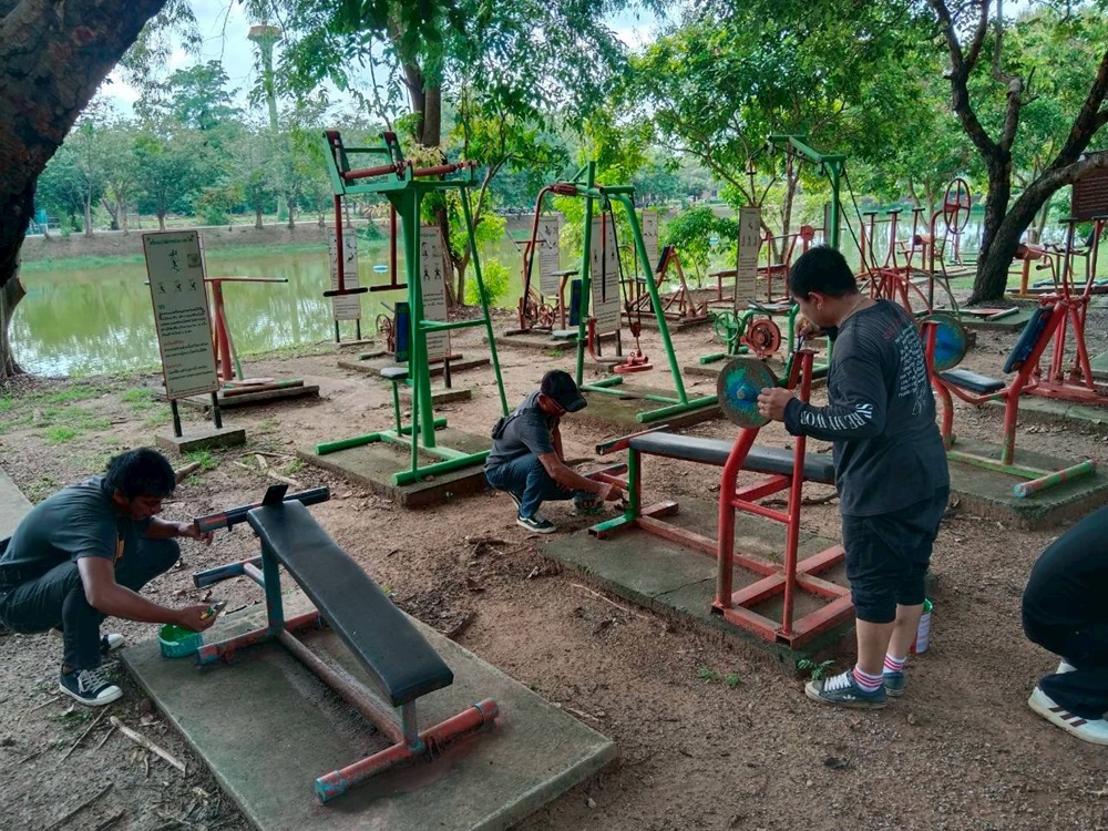 🛠️ กลุ่มที่ 2: ซ่อมบำรุงและเพิ่มสีสันให้ “สวนสุขภาพ” ซ่อมแซมและทาสีเครื่องออกกำลังกาย เพื่อให้สามารถกลับมาใช้งานได้อย่างปลอดภัย สดใส และพร้อมต้อนรับบุคลากรและนักศึกษาให้มาใช้พื้นที่ออกกำลังกายอย่างมีความสุข