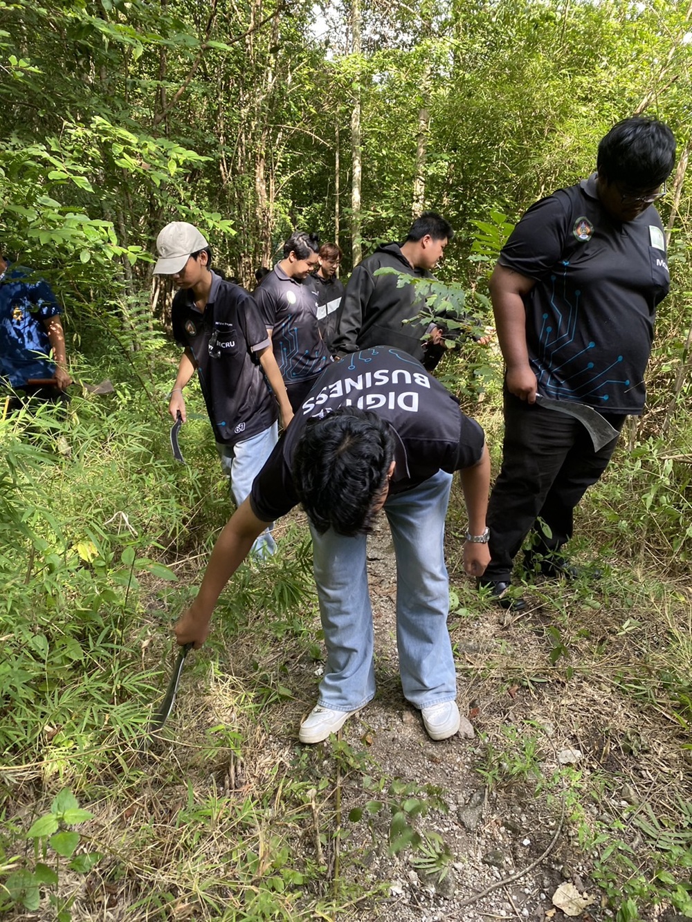 สาขาวิชาการจัดการธุรกิจดิจิทัล คณะวิทยาการจัดการ จัดกิจกรรมจิตอาสา “เก็บกวาดเคลียร์พื้นที่เส้นทางธรรมชาติ และศึกษาการทำแนวกันไฟ–โป่งเทียม”