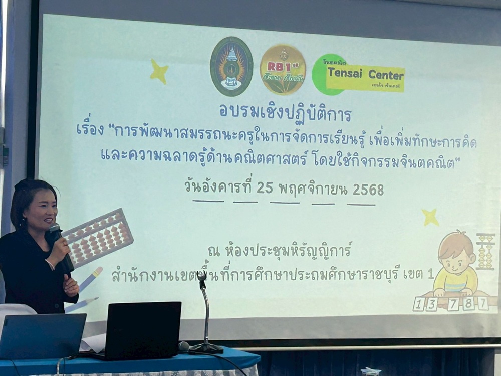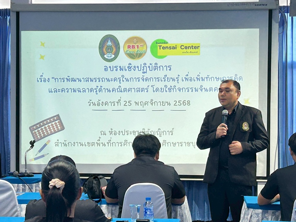 เมื่อวันที่ 25 พฤศจิกายน 2568 คณะวิทยาศาสตร์และเทคโนโลยี มหาวิทยาลัยราชภัฏหมู่บ้านจอมบึง จัดโครงการอบรมเชิงปฏิบัติการ เรื่อง “การพัฒนาทักษะการคิดด้วยกิจกรรมจินตคณิตในระดับประถมศึกษา” ให้กับครูโรงเรียนในสังกัดสำนักงานคณะกรรมการการศึกษาขั้นพื้นฐาน (สพฐ.) ทั้งโรงเรียนขนาดเล็กและโรงเรียนทั่วไปในจังหวัดราชบุรีและจังหวัดสมุทรสงคราม