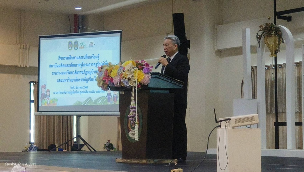 วันที่ 1 ธันวาคม 2568 มหาวิทยาลัยราชภัฏเชียงใหม่ (มร.ช.) ร่วมกับ มหาวิทยาลัยราชภัฏหมู่บ้านจอมบึง (มร.มจ.) จัดกิจกรรมสำคัญเพื่อยกระดับ “สถาบันผลิตและพัฒนาครูโครงการครูรัก(ษ์)ถิ่น” ณ มหาวิทยาลัยราชภัฏเชียงใหม่ อ.แม่ริม จ.เชียงใหม่
