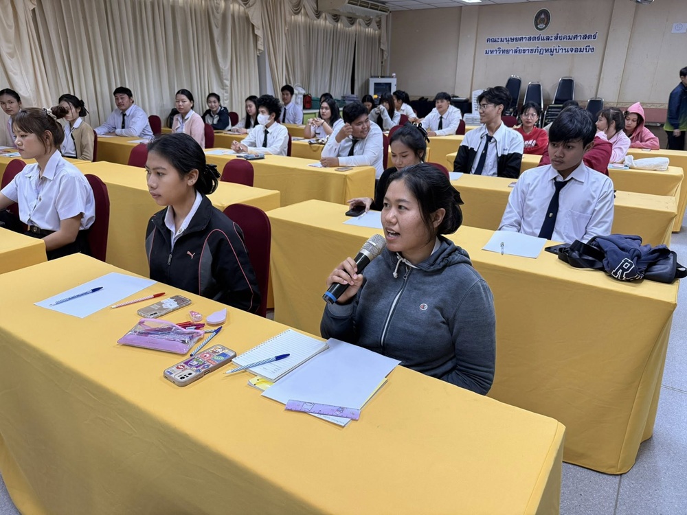 วันพุธที่ 11 ธันวาคม 2568 คณะมนุษยศาสตร์และสังคมศาสตร์ มหาวิทยาลัยราชภัฏหมู่บ้านจอมบึง จัดอบรมเชิงปฏิบัติการ “พัฒนาทักษะการพูดและการนำเสนออย่างมืออาชีพ (พูดให้ปัง นำเสนออย่างโปร)” ให้กับผู้แทนนักศึกษาจากทุกสาขา ณ ห้องประชุมราชาวดี คณะมนุษยศาสตร์และสังคมศาสตร์