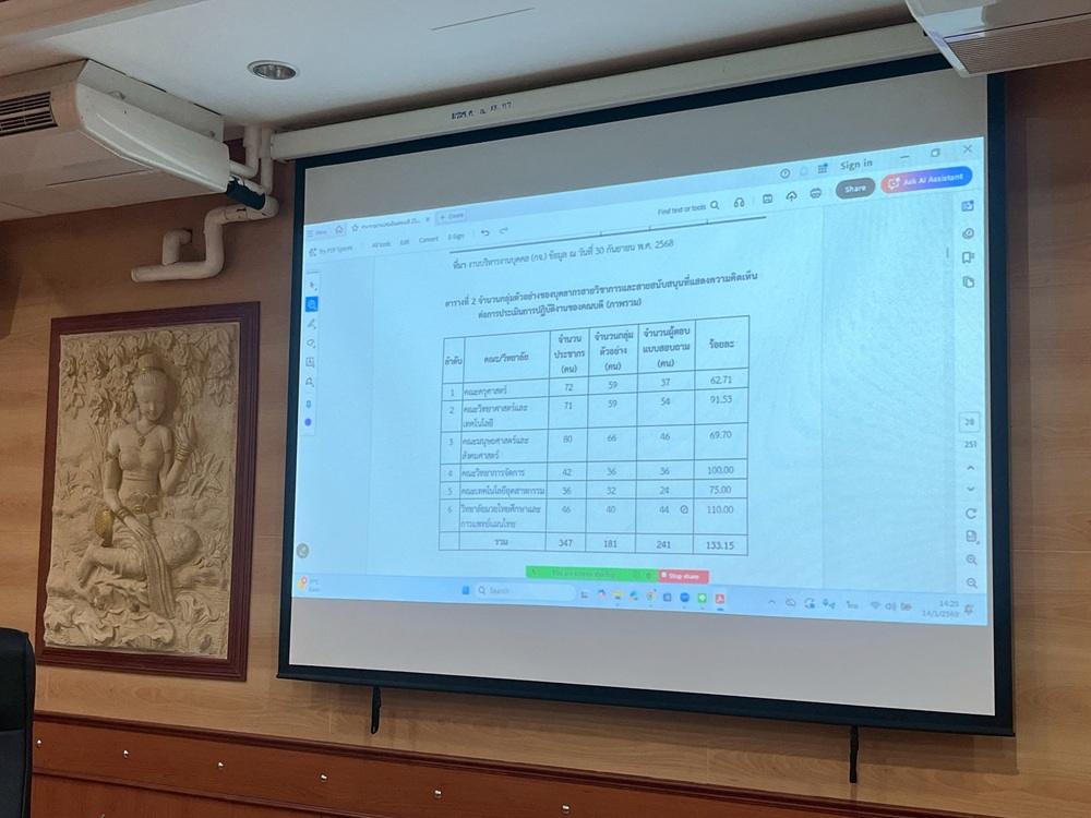 การประชุมในครั้งนี้มีวาระสำคัญ คือการพิจารณา (ร่าง) รายงานผลการติดตาม ตรวจสอบ และประเมินผลงานของคณบดี ประจำปีงบประมาณ พ.ศ. 2569 ซึ่งเป็นกระบวนการสำคัญในการกำกับ ติดตาม และประเมินผลการบริหารงานของคณะต่าง ๆ ให้เป็นไปตามนโยบาย ยุทธศาสตร์ และทิศทางการพัฒนาของมหาวิทยาลัยอย่างเป็นระบบ