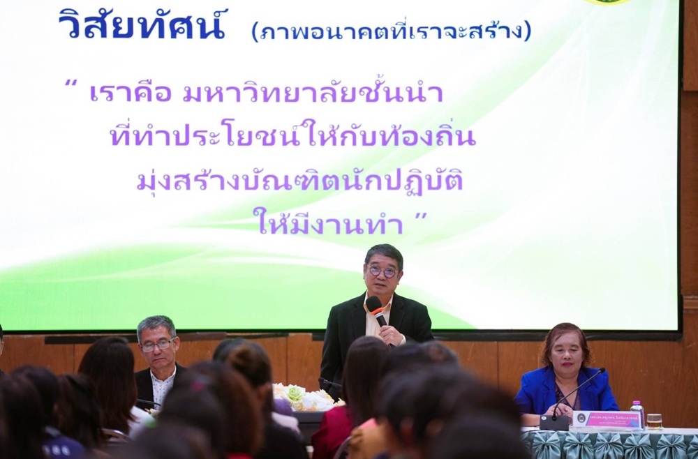การประชุมครั้งนี้จัดขึ้นเพื่อ มอบนโยบายและแนวทางการทำงานร่วมกัน ในการขับเคลื่อนและพัฒนามหาวิทยาลัยอย่างเป็นระบบ โดยมีการเน้นย้ำถึงการทำงานที่สอดคล้องกับวิสัยทัศน์ของมหาวิทยาลัย “เราคือ มหาวิทยาลัยชั้นนำที่ทำประโยชน์ให้กับท้องถิ่น มุ่งสร้างบัณฑิตนักปฏิบัติที่มีงานทำ” มุ่งเสริมสร้างความเข้าใจที่ตรงกันระหว่างผู้บริหารและบุคลากร เพื่อร่วมกันยกระดับคุณภาพการทำงาน ตอบสนองต่อพันธกิจของมหาวิทยาลัย และพัฒนาศักยภาพของบุคลากรให้ก้าวทันต่อการเปลี่ยนแปลงในอนาคต