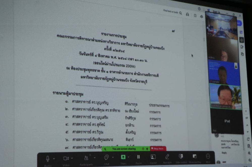 มหาวิทยาลัยราชภัฏหมู่บ้านจอมบึงจัดประชุมคณะกรรมการพิจารณาตำแหน่งทางวิชาการ ครั้งที่ 4/2568 ส่งเสริมคุณภาพทางวิชาการและความก้าวหน้าของบุคลากร