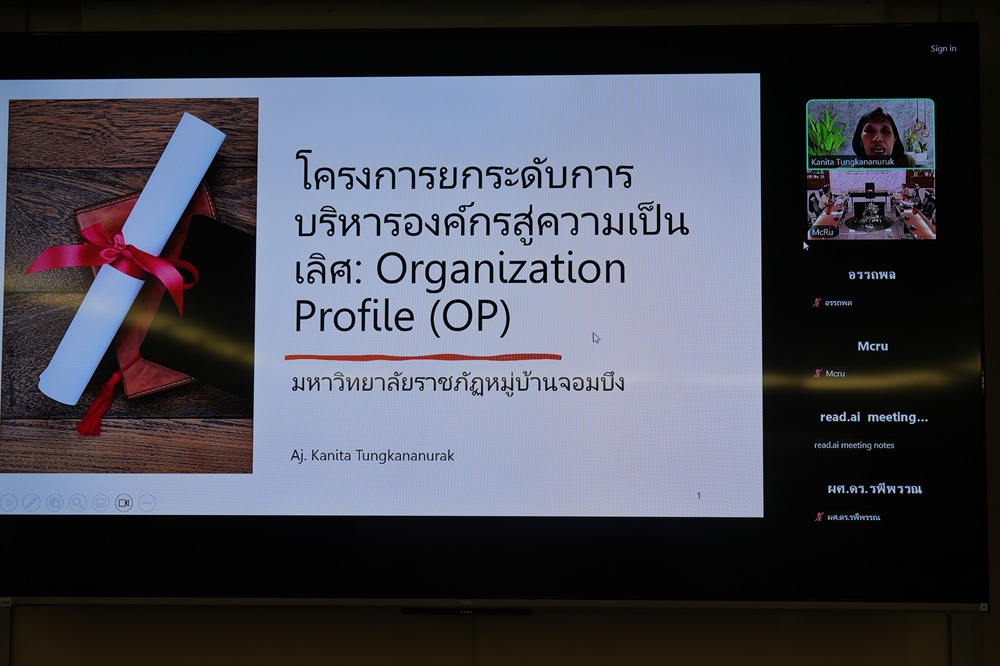 วันที่ 20 ตุลาคม 2568 ผู้ช่วยศาสตราจารย์ อรรถพล อุสายพันธ์ รักษาราชการแทนอธิการบดี มหาวิทยาลัยราชภัฏหมู่บ้านจอมบึง เป็นประธานในการเปิดโครงการ “ยกระดับการบริหารองค์กรสู่ความเป็นเลิศด้วย Organization Profile สำหรับผู้บริหาร” ประจำปีการศึกษา 2568 ผ่านระบบออนไลน์ โดยมีคณะผู้บริหารและทีมงานจาก สำนักงานประกันคุณภาพการศึกษาเข้าร่วมการประชุม ณ ห้องประชุมทรัพย์คิรี ชั้น 3 อาคารอำนวยการ มหาวิทยาลัยราชภัฏหมู่บ้านจอมบึง