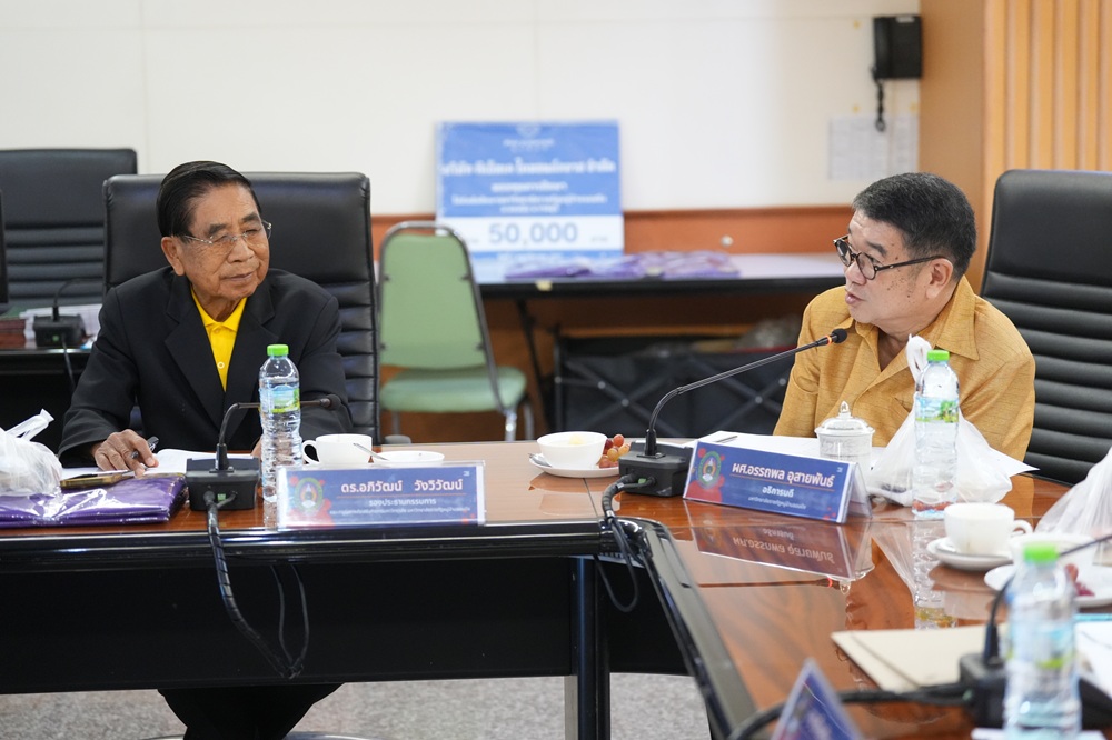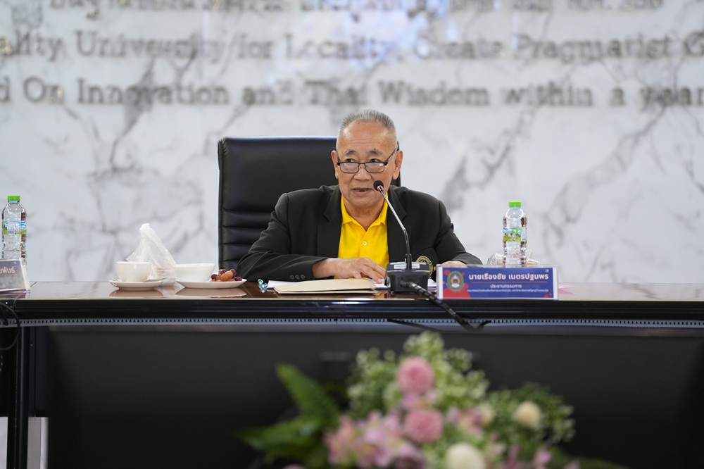 มหาวิทยาลัยราชภัฏหมู่บ้านจอมบึงประชุมคณะกรรมการส่งเสริมกิจการมหาวิทยาลัย (คสม.) พร้อมร่วมแสดงความยินดีกับอธิการบดีและผู้บริหาร