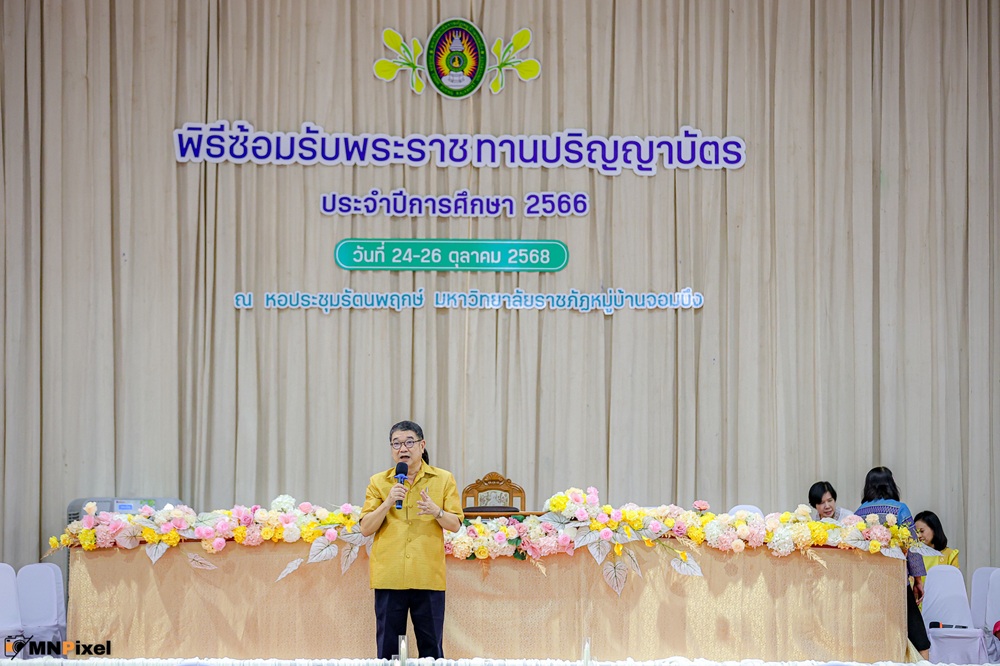 มหาวิทยาลัยราชภัฏหมู่บ้านจอมบึงจัดพิธีการฝึกซ้อมการเข้ารับพระราชทานปริญญาบัตร ประจำปีการศึกษา 2566 (วันแรก)
