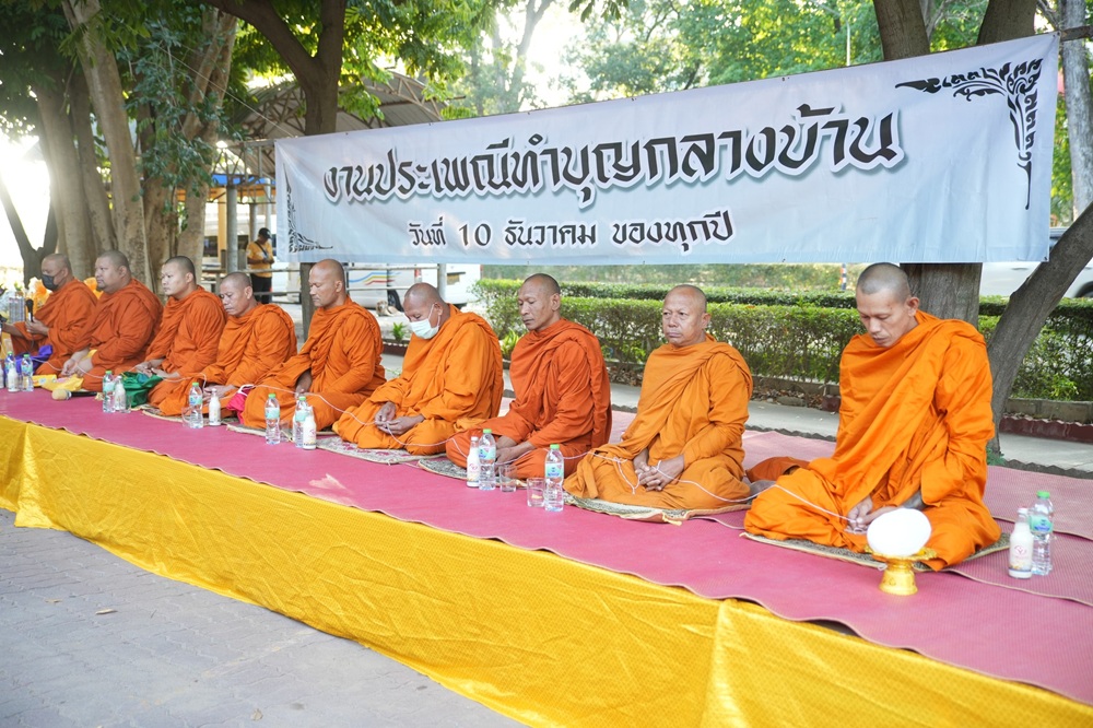มหาวิทยาลัยราชภัฏหมู่บ้านจอมบึงจัดพิธีทำบุญกลางบ้าน ประจำปี 2568