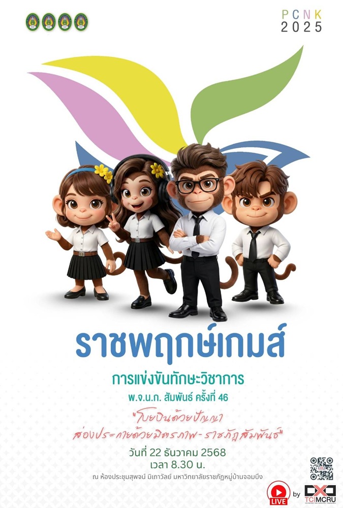การแข่งขันทักษะวิชาการ พ.จ.น.ก. สัมพันธ์ ครั้งที่ 46 “ราชพฤกษ์เกมส์” จัดขึ้นในวันที่ 22 ธันวาคม 2568 ณ มหาวิทยาลัยราชภัฏหมู่บ้านจอมบึง นับเป็นเวทีสำคัญในการพัฒนาศักยภาพผู้เรียนและสร้างเครือข่ายความร่วมมือทางวิชาการอย่างยั่งยืน