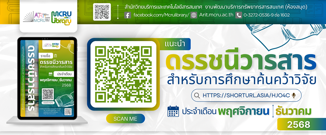 สอบถามข้อมูลเพิ่มเติมได้ที่ MCRU LIBRARY ฝ่ายงานพัฒนาบริการทรัพยากรสารสนเทศ (ห้องสมุด)