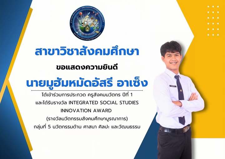 ขอแสดงความยินดีกับนักศึกษาสาขาวิชาสังคมศึกษา คว้ารางวัลนวัตกรรมสังคมศึกษาบูรณาการ ระดับประเทศ