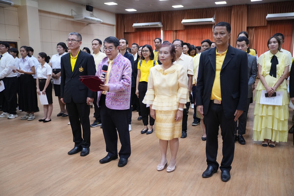 วันที่ 10 ตุลาคม 2568 ผู้ช่วยศาสตราจารย์อรรถพล อุสายพันธ์ รักษาราชการแทนอธิการบดีมหาวิทยาลัยราชภัฏหมู่บ้านจอมบึง เป็นประธานในพิธีสำนึกในพระมหากรุณาธิคุณ พระบาทสมเด็จพระบรมชนกาธิเบศร มหาภูมิพลอดุลยเดชมหาราช บรมนาถบพิตร (รัชกาลที่ 9) ณ ห้องประชุมฉัตรฟ้า ชั้น 4 อาคารศูนย์ภาษาและศูนย์คอมพิวเตอร์
