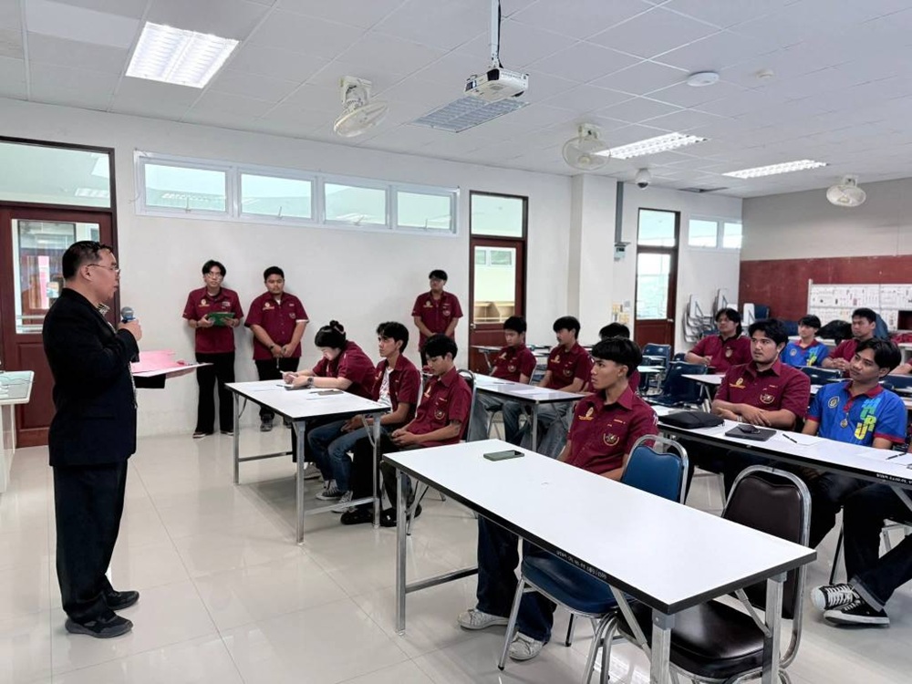 โดยมี อาจารย์ว่าที่ ร.อ.ไพฑูรย์ เหมือนเพ็ชร อาจารย์ประจำสาขาวิชาอาชีวอนามัยและความปลอดภัย เป็นวิทยากรบรรยายให้ความรู้เกี่ยวกับการทำงานกับระบบไฟฟ้าอย่างถูกต้องและปลอดภัย สำหรับนักศึกษาสาขาวิชาเทคโนโลยีไฟฟ้าและอิเล็กทรอนิกส์ ภาคปกติ ชั้นปีที่ 3