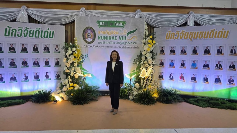 เมื่อวันที่ 3 ธันวาคม 2568 ผศ.อรนุช จินดาสกุลยนต์ คณบดีคณะเทคโนโลยีอุตสาหกรรม มหาวิทยาลัยราชภัฏหมู่บ้านจอมบึง เข้าร่วมการประกวดและนำเสนอผลงานนวัตกรรมเรื่อง “การออกแบบและพัฒนาเครื่องแยกเส้นใยมะพร้าว” ในการประชุมวิชาการระดับชาติและนานาชาติ “ราชภัฏวิจัย ครั้งที่ 8” ณ หอประชุมศรีวชิรโชติ มหาวิทยาลัยราชภัฏพิบูลสงคราม จังหวัดพิษณุโลก