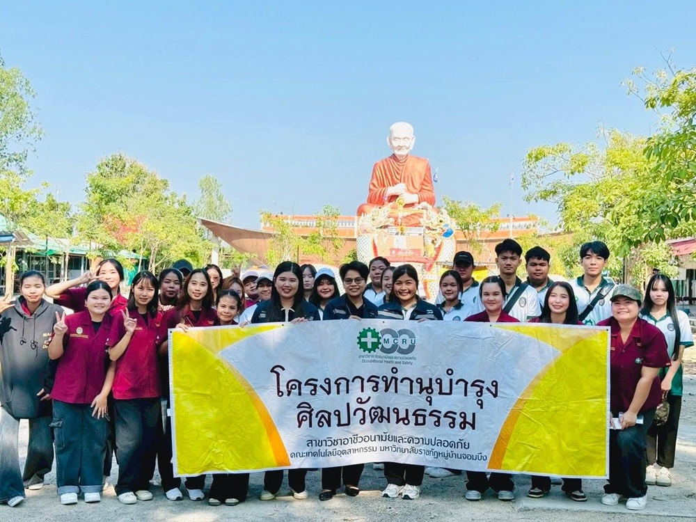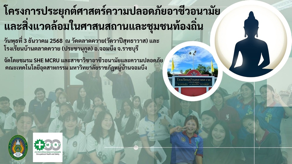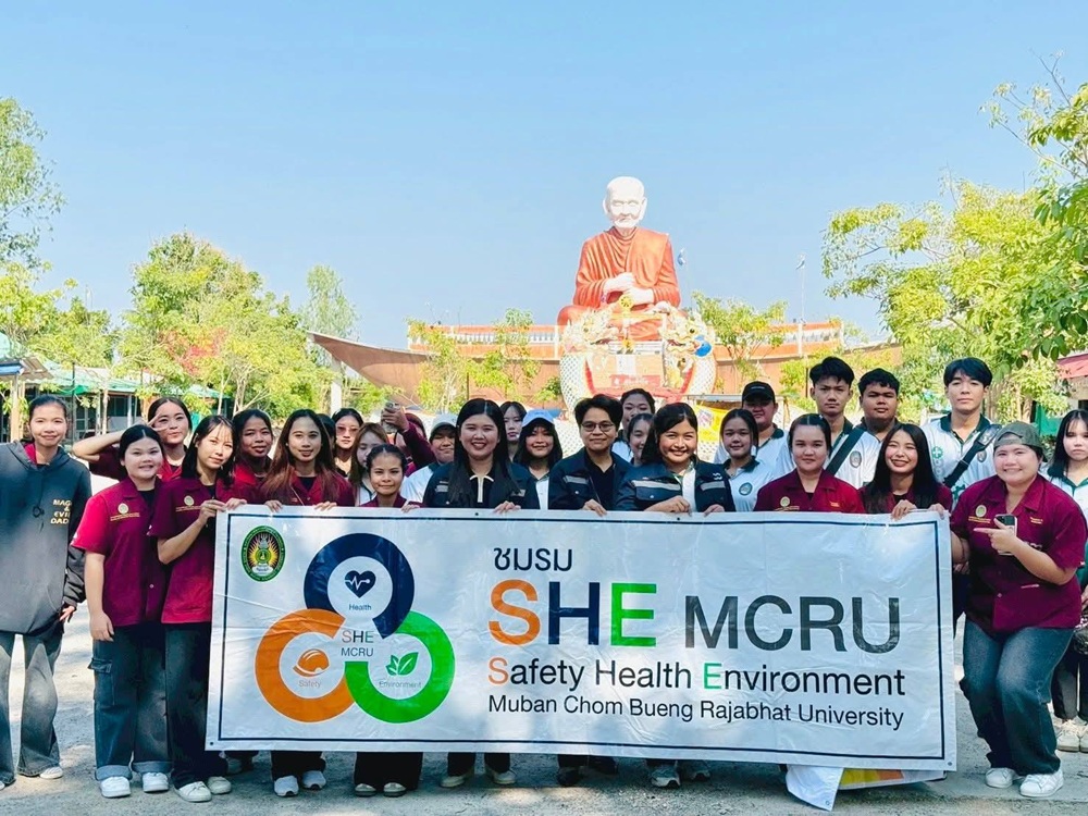 เมื่อวันที่ 3 ธันวาคม 2568 ชมรม SHE MCRU มหาวิทยาลัยราชภัฏหมู่บ้านจอมบึง จัดกิจกรรมภายใต้โครงการ “ประยุกต์ศาสตร์ความปลอดภัยอาชีวอนามัย สิ่งแวดล้อมในศาสนสถานและชุมชนท้องถิ่น” เพื่อส่งเสริมความตระหนักด้านความปลอดภัยและสิ่งแวดล้อมในพื้นที่สาธารณะและศาสนสถาน