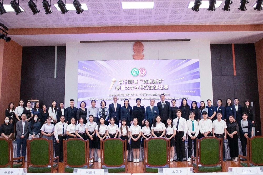 เมื่อวันที่ 19 ธันวาคม 2568 สาขาวิชาภาษาจีน คณะมนุษยศาสตร์และสังคมศาสตร์ มหาวิทยาลัยราชภัฏหมู่บ้านจอมบึง นำโดย อาจารย์ ว่าที่ ร.อ.ดร.กฤษดา กฤตเมธกุล ประธานสาขาวิชาภาษาจีน พร้อมด้วย อาจารย์ ดร.อรพรรณ สุวภาพ และ อาจารย์ Lyu Wenjie (吕文杰) อาจารย์ประจำสาขาวิชาภาษาจีน ได้นำนักศึกษาเข้าร่วมการแข่งขัน “โครงการประกวดสุนทรพจน์ภาษาจีนสิรินธร ระดับอุดมศึกษา ชิงถ้วยพระราชทาน สมเด็จพระกนิษฐาธิราชเจ้า กรมสมเด็จพระเทพรัตนราชสุดาฯ สยามบรมราชกุมารี ครั้งที่ 14” รอบชิงชนะเลิศ ณ ชั้น 9 อาคารมหาจักรีสิรินธร คณะอักษรศาสตร์ จุฬาลงกรณ์มหาวิทยาลัย โดยมีสถาบันอุดมศึกษาจากทั่วประเทศส่งนักศึกษาเข้าร่วมประชันความสามารถด้านการใช้ภาษาจีนอย่างเข้มข้น