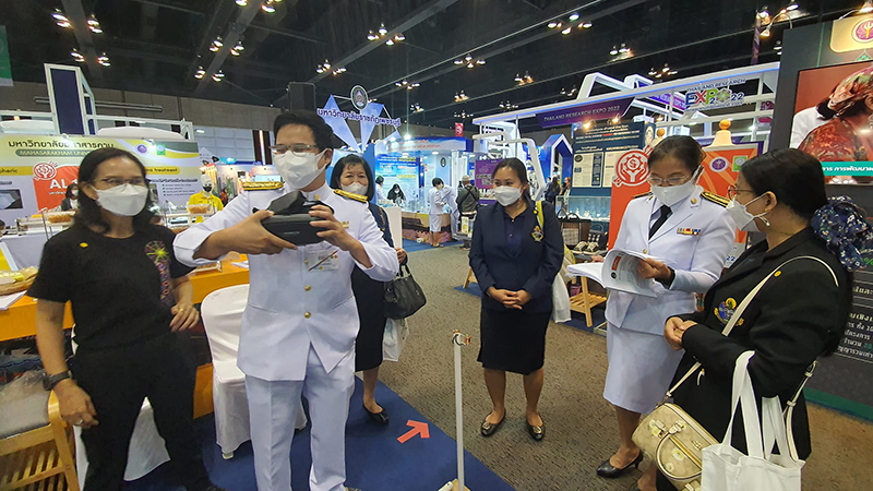 สถาบันวิจัยและพัฒนานำทีมนักวิจัยของมหาวิทยาลัยราชภัฏหมู่บ้านเข้าร่วมนำเสนอ และจัดแสดงนิทรรศการผลงานวิจัยในงานมหกรรมงานวิจัยแห่งชาติ 2565Thailand Research Expore 2022 “วิจัยเพื่อพัฒนาประเทศสู่ความมั่นคง มั่งคั่ง และยั่งยืน”