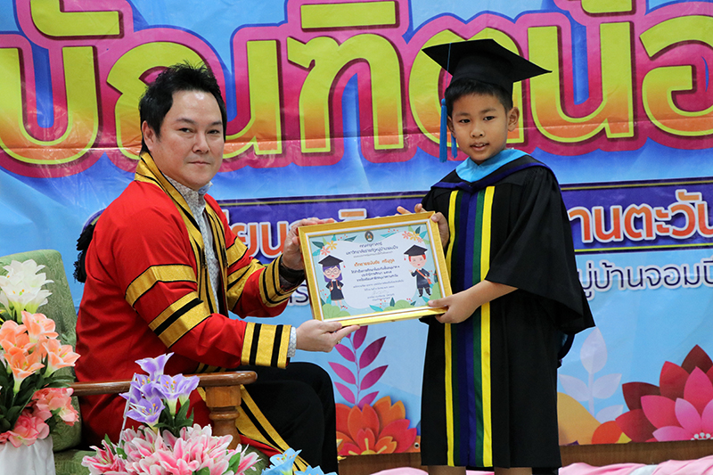 พิธีมอบเกียรติบัตร(บัณฑิตน้อย) ให้กับนักเรียนโรงเรียนอนุบาลทานตะวัน มหาวิทยาลัยราชภัฏหมู่บ้านจอมบึง
