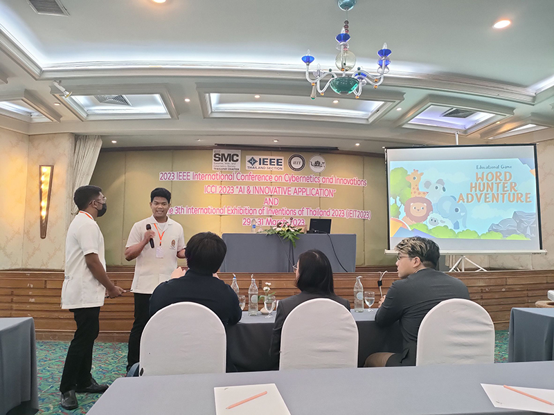 สาขาวิชาคอมพิวเตอร์ศึกษา คณะวิทยาศาสตร์และเทคโนโลยี มหาวิทยาลัยราชภัฏหมู่บ้านจอมบึงส่งนักศึกษาเข้าร่วมประกวดนวัตกรรมในงาน The 3rd International Exhibition of Inventions of Thailand (iEIT) 2023 ของสมาคม IEEE SMC Systems, Man, and Cybernatics Society Thailand Chapter ระหว่างวันที่ 29-31 มีนาคม 2566 ณ โรงแรมลองบีช อำเภอชะอำ จังหวัดเพชรบุรี ซึ่งผลการประกวด อละได้รับรางวัลระดับเหรียญทอง ชื่อผลงาน “Wheelchairs for Disabled Controlled by Internet of Things” นักศึกษาคือ นายธนทัต ภู่ระย้า และนางสาวโชษิตา พ่วงจินดา อาจารย์ที่ปรึกษา ดร.บุรินทร์ นรินทร์ ระดับเหรียญเงิน ชื่อผลงาน “Education Game of Water Cycle” นักศึกษาคือ นายจิรายุ นิ่มนวล และนางสาวศุภร ถึงแสง อาจารย์ที่ปรึกษา ดร.ภัทรานิษฐ์ ศรีสกลทรัพย์, ดร.สิทธิเชนทร์ พราหมณ์ชู และระดับเหรียญทองแดง ชื่อผลงาน Word Hunter Game นักศึกษาคือ นายพีรดนย์ เดชหลำ และนายพงศธร จริตธรรม อาจารย์ที่ปรึกษา ดร.ภัทรานิษฐ์ ศรีสกลทรัพย์, ผู้ช่วยศาสตราจารย์ ดร.ภูมินทร์ สุมาลัย