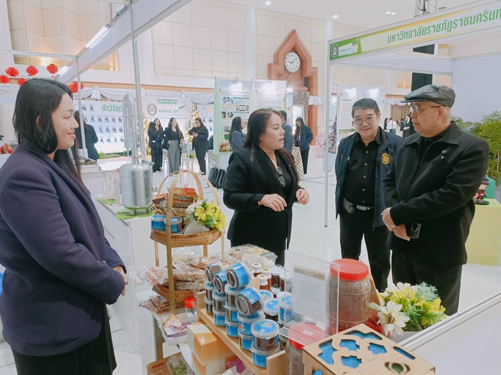 วันที่ 2 ธันวาคม พ.ศ. 2568 ผู้ช่วยศาสตราจารย์ อรรถพล อุสายพันธ์ รักษาราชการแทนอธิการบดีมหาวิทยาลัยราชภัฏหมู่บ้านจอมบึง ได้เดินทางเยี่ยมชมบูธนิทรรศการแสดงผลงานทางวิชาการของมหาวิทยาลัยราชภัฏหมู่บ้านจอมบึง และเครือข่ายมหาวิทยาลัยราชภัฏจากทั่วประเทศ ภายในงาน “ราชภัฏวิจัย ครั้งที่ 8” ณ มหาวิทยาลัยราชภัฏพิบูลสงคราม