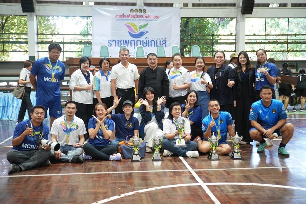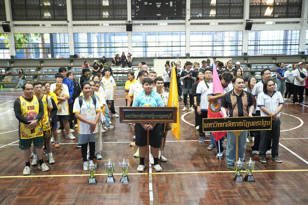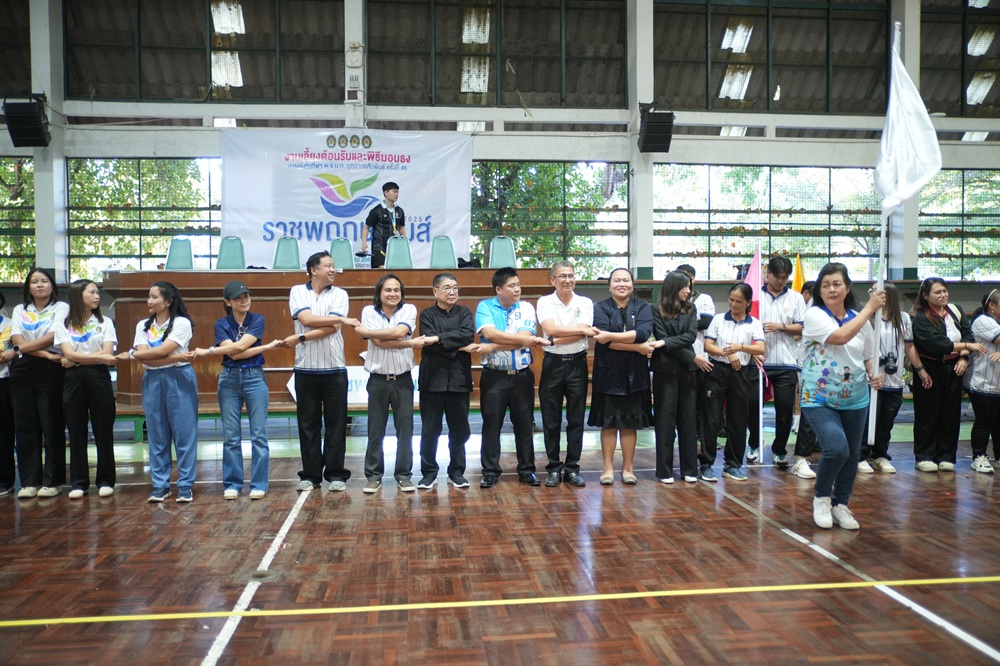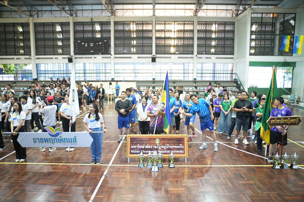 วันที่ 19 ธันวาคม 2568 ผู้ช่วยศาสตราจารย์ อรรถพล อุสายพันธ์ รักษาราชการแทนอธิการบดีมหาวิทยาลัยราชภัฏหมู่บ้านจอมบึง ให้เกียรติเป็นประธานในพิธีมอบถ้วยรางวัลและพิธีปิดการแข่งขัน กีฬาบุคลากร พ.จ.น.ก.สัมพันธ์ ครั้งที่ 46 ภายใต้ชื่อ “ราชพฤกษ์เกมส์” ณ โรงยิมพลศึกษา มหาวิทยาลัยราชภัฏหมู่บ้านจอมบึง