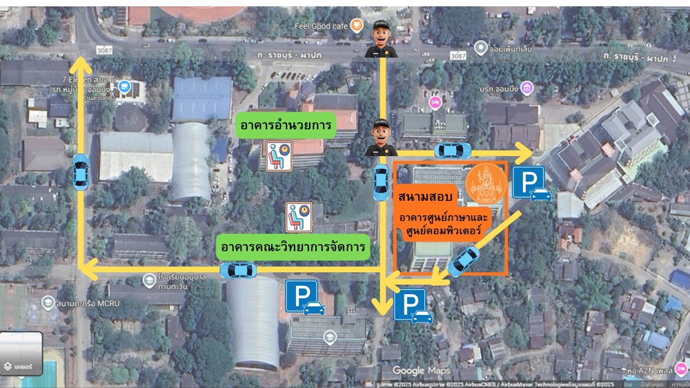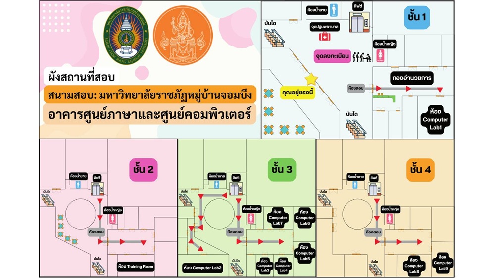 สนามสอบ : มหาวิทยาลัยราชภัฏหมู่บ้านจอมบึง อาคารศูนย์ภาษาและศูนย์คอมพิวเตอร์